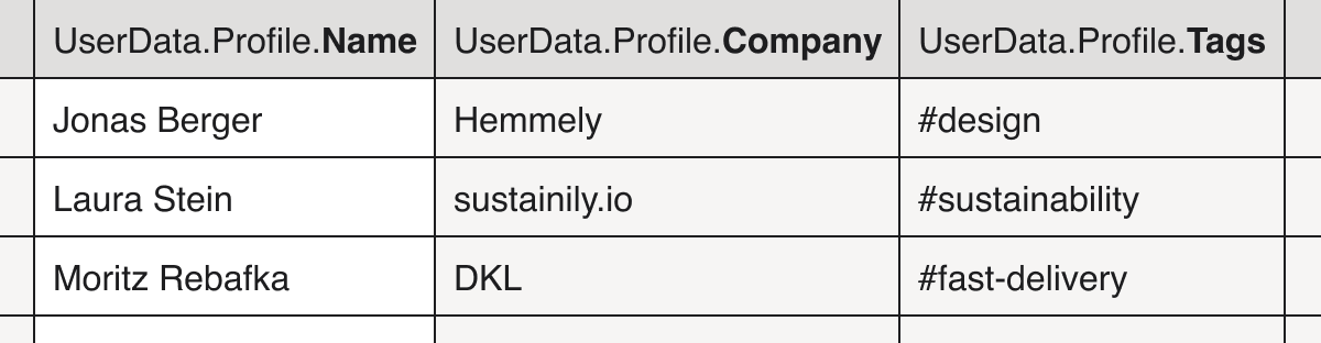 Namensschilder leicht gemacht: Nutze die neuen Spalten (z.b. Name, Company & Tags) direkt für deinen Seriendruck.