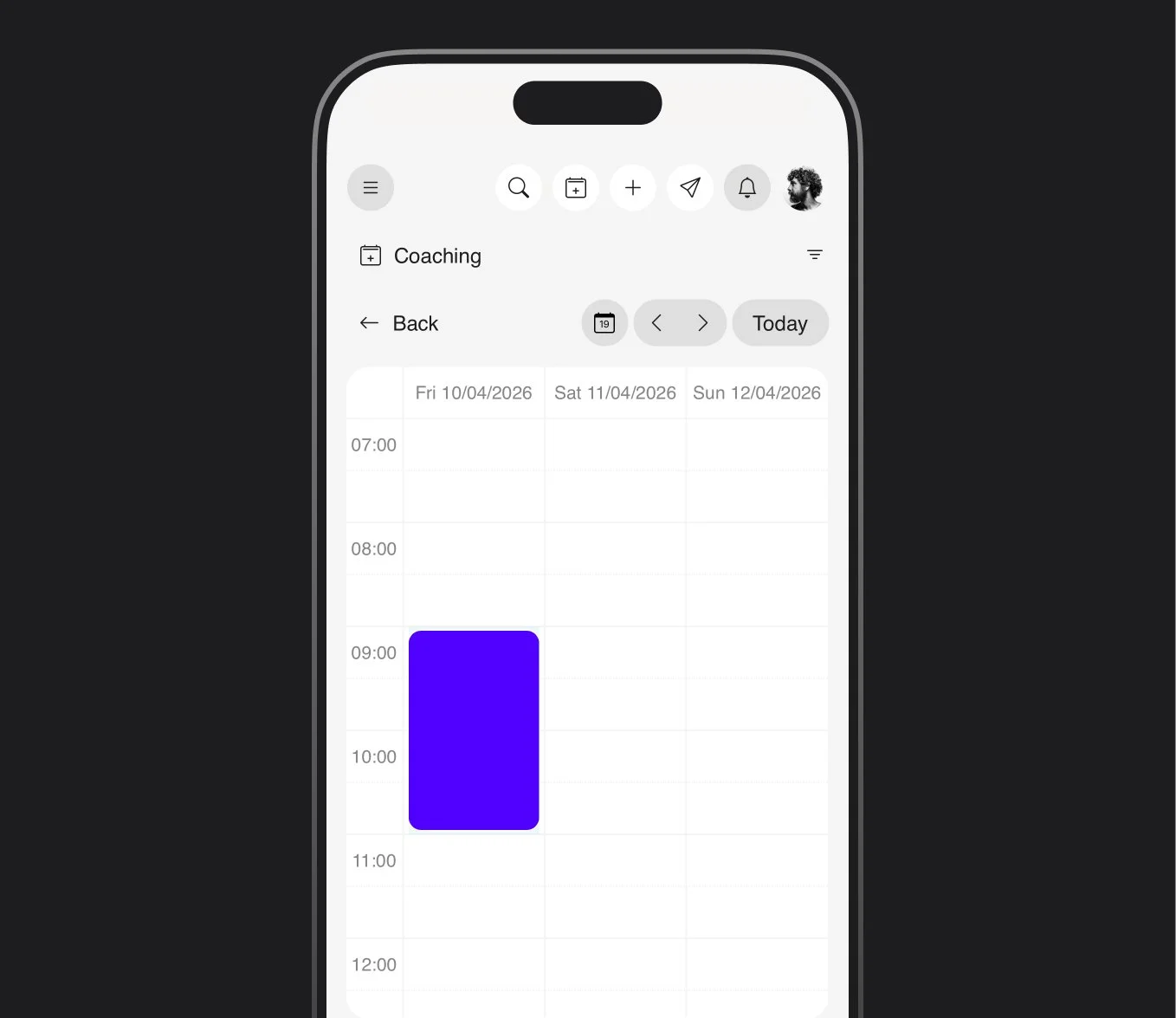 Du brauchst keine externen Tools wie Calendly mehr. In coapp ist ein Buchungskalender integriert. Deine Klienten sehen deine verfügbaren Zeiten, wählen einen Slot für ihr 1:1 Sparring aus und bezahlen direkt. Der Termin wird automatisch in deinem Kalender geblockt (via Google Calendar).